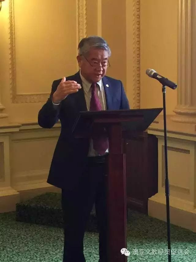 维州州议员与多元文化及亚洲关系拓展副部长林美丰先生(Mr Hong Lim)为蒋天麟会长的就任表示祝贺